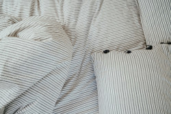 HAYn Mega Dot -päiväpeitteessä on tikkikuviointi, jossa on kolmiulotteinen ympyräkuvio, joka antaa tekstiilille elävän ja graafisen pinnan. Se yhdistää modernit muotoiluperiaatteet taktiiliseen rakenteeseen, joka antaa makuuhuoneelle rauhallisen ja tyylikkään ilmeen.